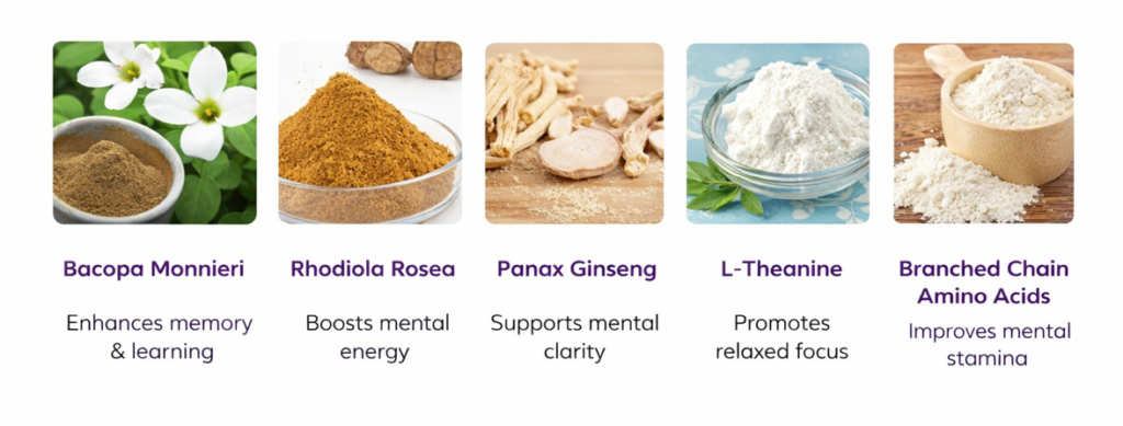 Its synergistic formula works to address memory, focus, mental clarity, energy and stress resistance without caffeine or stimulants.